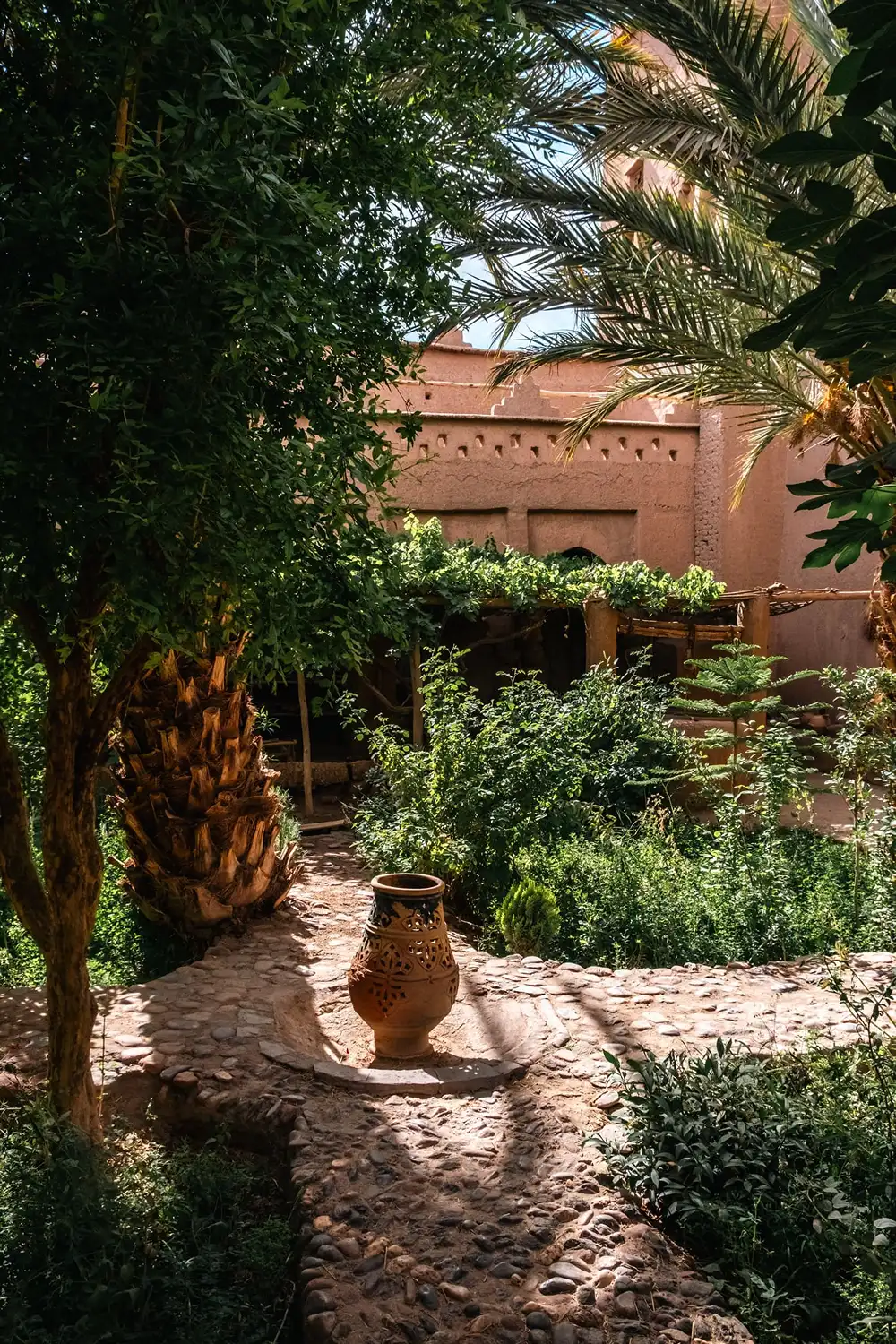 After breakfast, it's time to say goodbye to the desert as we drive through the picturesque Draa Valley, lined with lush palm groves and ancient kasbahs. As we cross the Anti-Atlas Mountains, sweeping views appear at every turn – your camera will be working overtime! Upon arriving in Ouarzazate, the "Gateway to the Desert," we'll check you into a comfortable hotel with a refreshing pool where you can cool off after your journey. In the evening, you may explore local shops or simply unwind by the pool, reflecting on your amazing desert experiences.