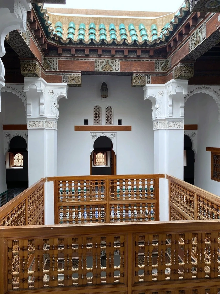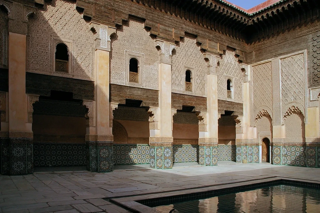Today is all about immersing yourself in the vibrant energy of Marrakech! After a delicious breakfast, our guide will take you on a walking adventure through the old Medina. You'll visit iconic spots like the impressive Koutoubia Mosque, the magnificent Bahia Palace with its stunning architecture, and the beautiful Ben Youssef Madrasa with its intricate tilework. In the afternoon, you'll have plenty of free time to explore the vibrant Souks, bargain like a pro, and discover treasures from fragrant spices to handmade goods. Don't forget to treat yourself to a refreshing cup of traditional Moroccan mint tea "Berber whiskey" You deserve it!
