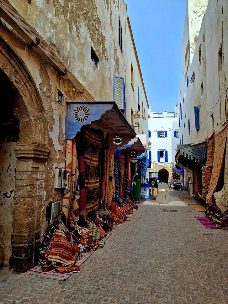 Time to trade the desert for the stunning Atlantic coast! We'll leave the peaceful Agafay Desert behind and drive to Essaouira, one of Morocco's most charming coastal cities. This place is pure magic with its relaxed vibe and incredible blend of Moroccan and European influences! You'll fall in love as you stroll through its UNESCO-listed medina with its whitewashed buildings, colorful doors, and bustling souks. Make sure to visit the picturesque harbor where traditional blue fishing boats bob peacefully in the water, and explore the historic ramparts with their sweeping ocean views! In the evening, prepare to be blown away by one of the most stunning sunsets you'll ever see over the Atlantic Ocean. You'll spend the night in a charming riad, completely surrounded by Essaouira's peaceful charm.